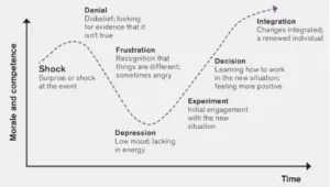 Change, whether chosen or imposed, initiates a complex emotional journey. When change happens to us, we traverse through seven stages: Shock, Denial, Frustration, Depression, Experiment, Decision, and Integration. It’s crucial to process each stage fully; skipping or rushing can hinder our ability to move forward effectively.